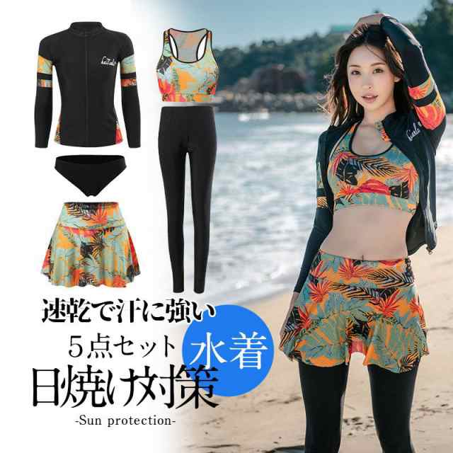 水着 レディース 40代 50代 20代 体型カバー 水着レディース 競泳用 ラッシュガード 5点セット 長袖 タンキニ水着 フィットネス 大きいサイズ 日焼け対策