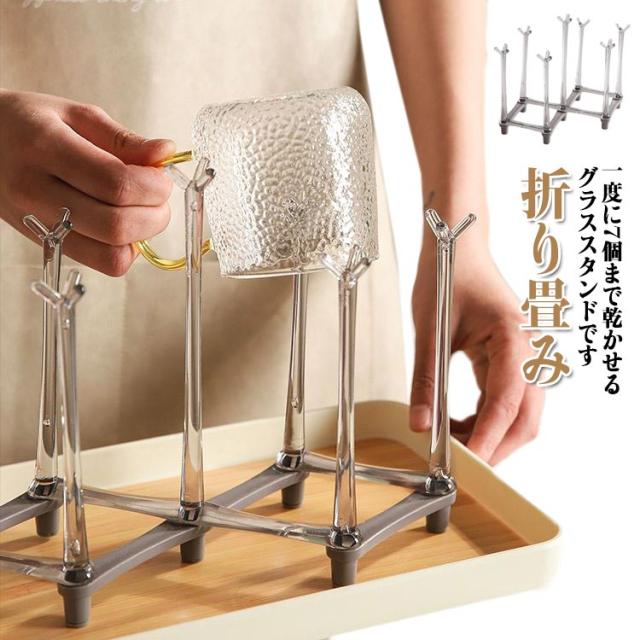 | 一度に7個まで乾かせるグラススタンドです。 安定感抜群!コップをしっかり支えてくれるので、倒れにくいです。 プラスチック製なので、錆びる心配もありません◎ 使わない時は、たたんでスリムに収納できるので、収納場所に困りません。 赤ちゃんの哺乳瓶や水筒ホルダーとしてもおすすめです。 | |