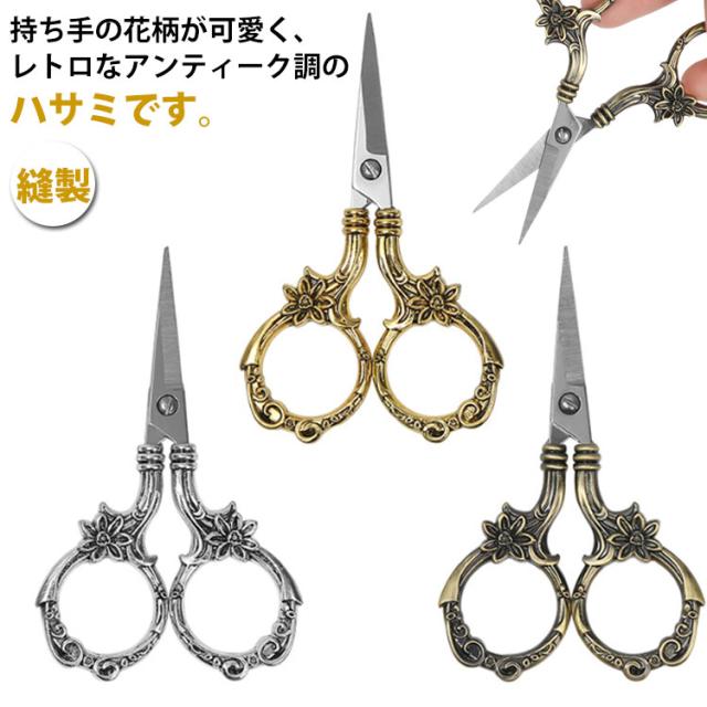 アンティーク はさみ 手芸用 ハサミ 糸切りばさみ お洒落 ヴィンテージ風 花柄 ステンレス 手芸用 布切り 糸切り 裁縫道具 縫製 家庭用 DIY用品 送料無料