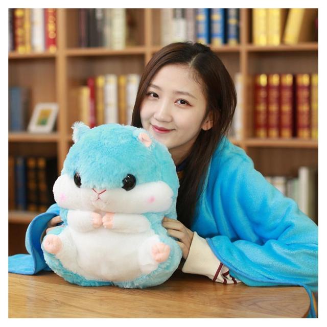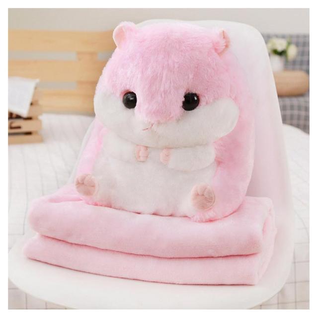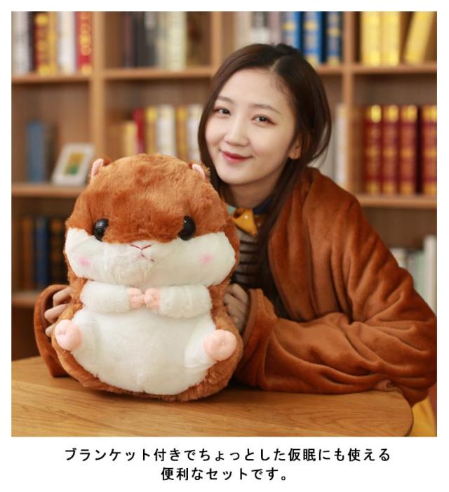 ハムスター ぬいぐるみ ブランケット付き 抱き枕 抱きクッション トンネルポケット お昼寝 あったか 枕 ひざ掛け 毛布 かわいい 子供 プレゼント ふんわり オフィス 癒しグッズ 快眠グッズ 動物