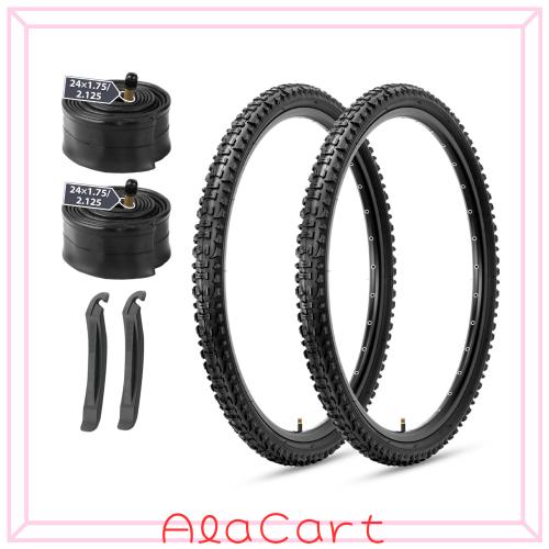 24インチマウンテンバイク用タイヤ交換キット含むタイヤ2本、インナーチューブ2本、タイヤレバー2本付き。前輪と後輪の両方に使用できます
