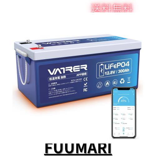VATRER POWER LiFePO4 12V300Ah 自己加熱 Bluetooth リン酸鉄リチウムイオンバッテリー 3840Wh 200A BMS内蔵 2560Wの負荷電力 5000回以上