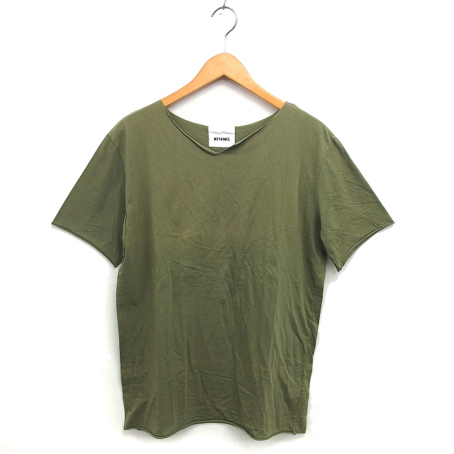 【中古】マイシンクス MYTHINKS スリットネック カットソー Tシャツ コットン 綿 無地 半袖 M カーキ /NT15 メンズ