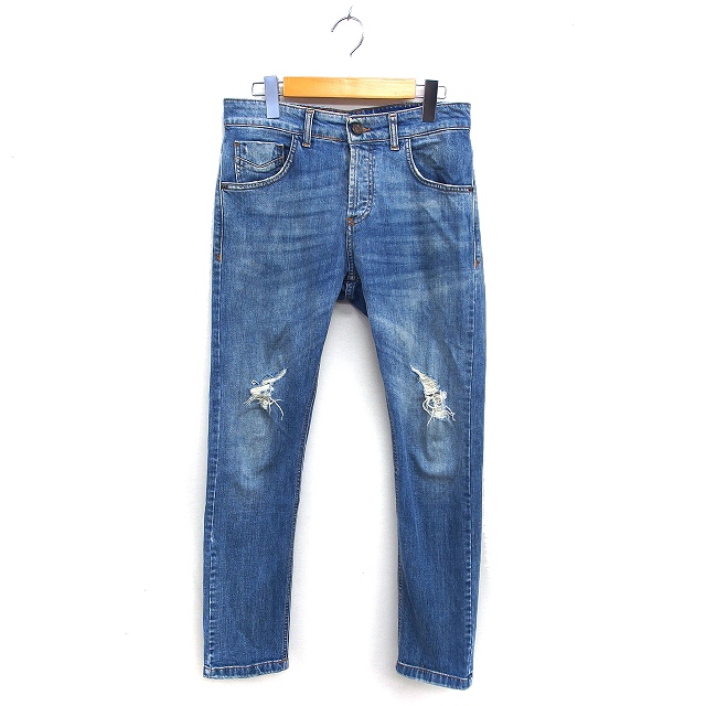 【中古】アントレ アミ entre amis デニム ダメージジーンズ ひげ加工 ストレート ボタンフライ コットン 綿 29 青