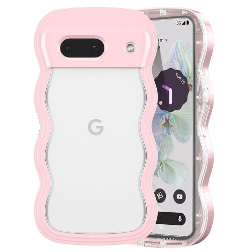 QLTYPRI Google Pixel7a ケース クリア ウェーブ ピクセル 7A ソフト TPU うねうね 透明 ケース おしゃれ 韓国 可愛い 薄型 軽量 耐衝撃 ピクセル7A 波状フレーム スマホケース ワイヤレス充電対応 ストラップホール付き グーグルピクセル7A なみなみ カバー(Google Pixel 7A、 ピンク)