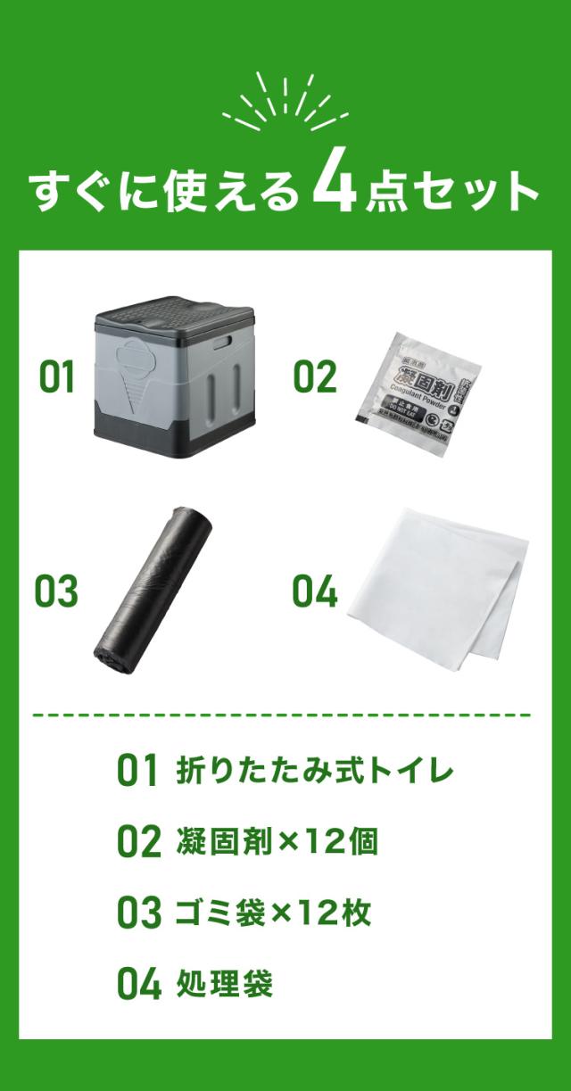 緊急用トイレ 折りたたみ 4点セット 12回分 簡易携帯トイレ 凝固剤付 防災 災害 地震対策 非常用 避難所 軽量 アウトドア キャンプ 仮設トイレ 防災セット【送料無料】