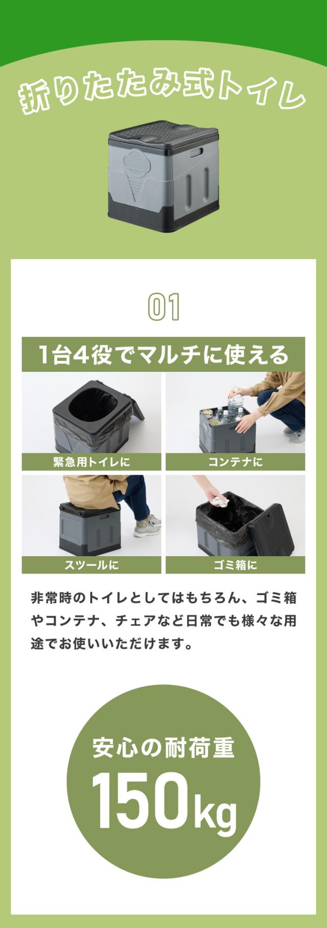 ・トイレ以外にも椅子、収納ボックス、ゴミ箱として使える