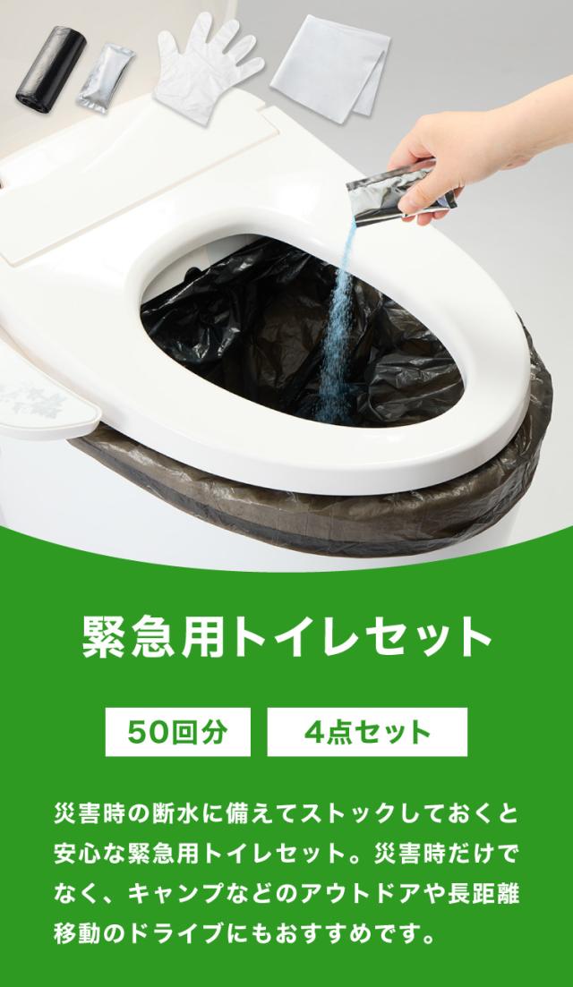 緊急用トイレ 4点セット 50回分 簡易トイレ 凝固剤付 防災 災害 地震対策 非常用 断水 避難所 軽量 アウトドア キャンプ 携帯トイレ 仮設トイレ 防災セット【送料無料】