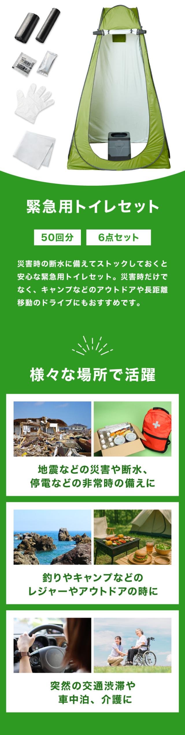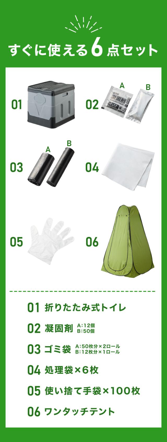 緊急用トイレ 折りたたみ 6点セット 50回分 テント付 簡易携帯トイレ 凝固剤付 防災 災害 地震対策 非常用 避難所 軽量 アウトドア キャンプ 仮設トイレ【送料無料】