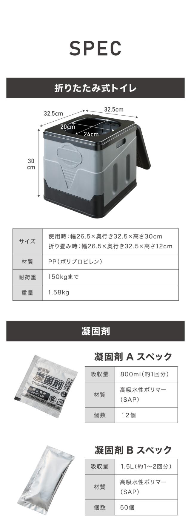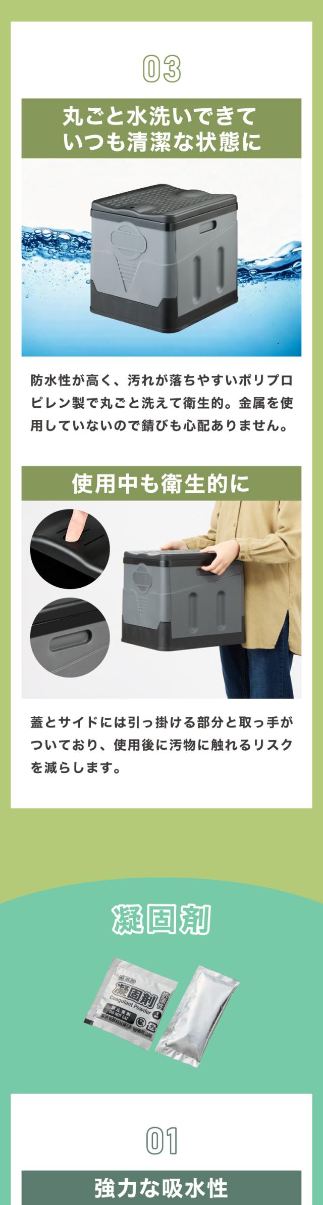 非常用トイレ本体:収納袋×1、ゴミ袋×12、凝固剤×12