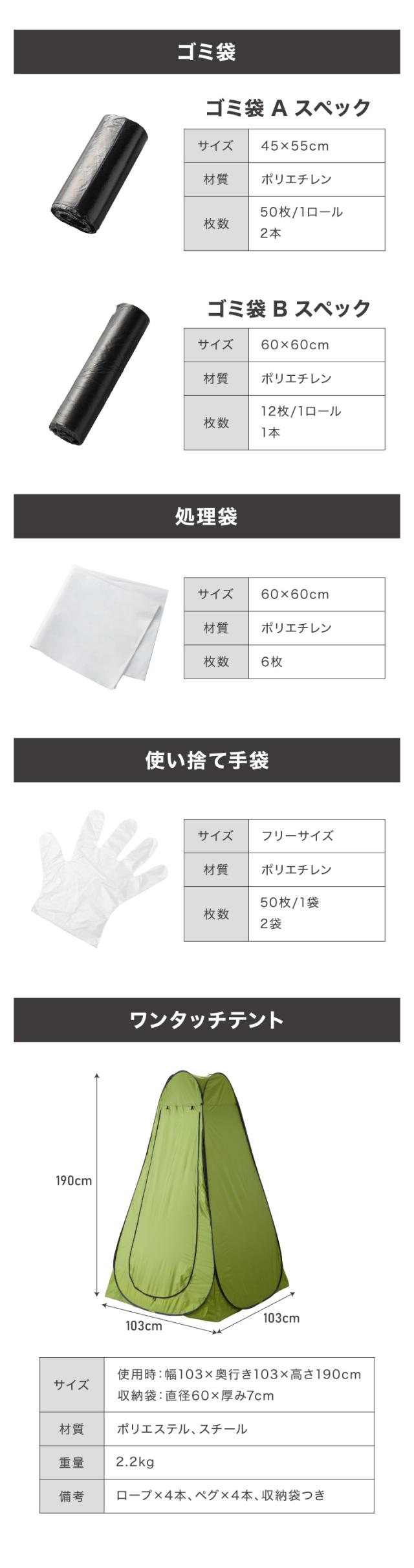 トイレ本体+トイレセット+テント