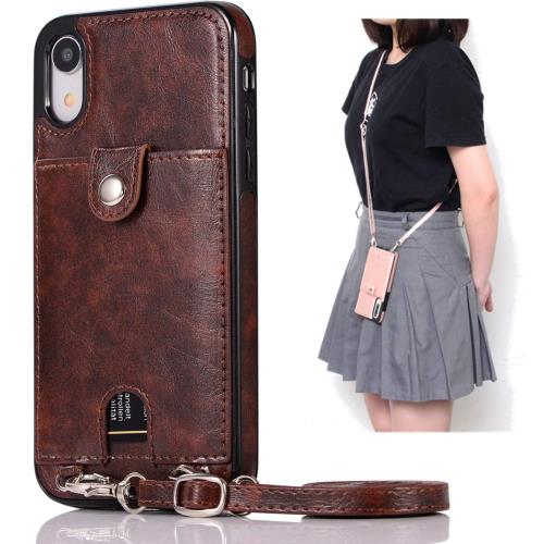 アイフォンXRケース iPhone XR カバー iPhone XRスマホケース iPhone XRケース iPhone XR 携帯カバーiPhone XR 6.1インチJaortyカード収納 高質PU皮革 ショルダー 斜めがけ 肩掛け 首かけ おしゃれ 軽量-ブラウン
