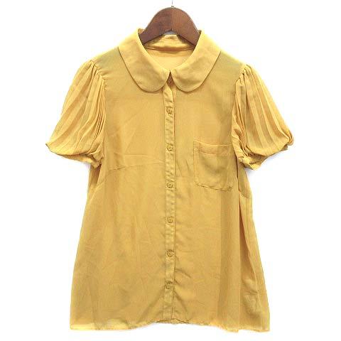 【中古】ジルスチュアート JILL STUART プリーツ パフスリーブ シアー ブラウス カメリアボタン 半袖 イエロー S レディース