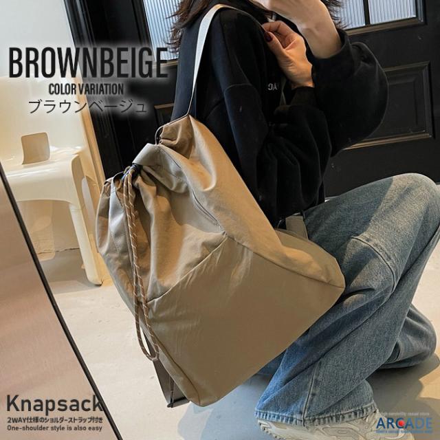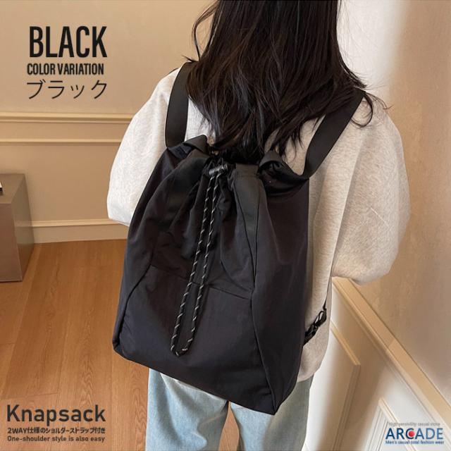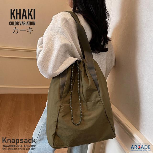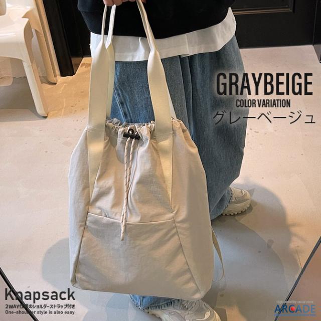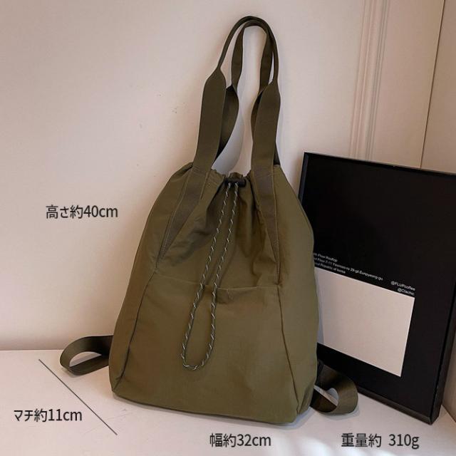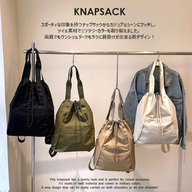 ナップサック 2WAYバッグ トートバッグ 大口 ドローコード ツイル素材 肩掛けし易いカジュアルバッグ リュックサック