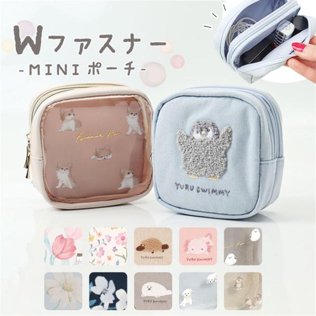 クーリア ポーチ ミニポーチ 通販 化粧ポーチ コスメポーチ ダブルファスナー メイクポーチ ミニサイズ 小物入れ 小さめ レディース 女性 女の子 コンパクト リップ 化粧品 可愛い