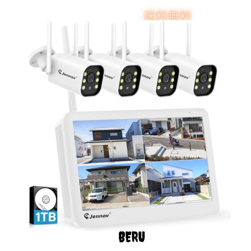 JENNOV 防犯カメラ 屋外 IP66防水防塵 500万画素 超高画素 モニター付き 130°広角 1TBHDD内蔵 24時間録画機能 AI人体検知機能付き 防犯