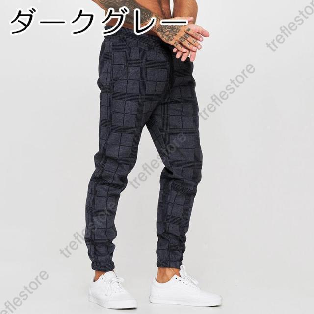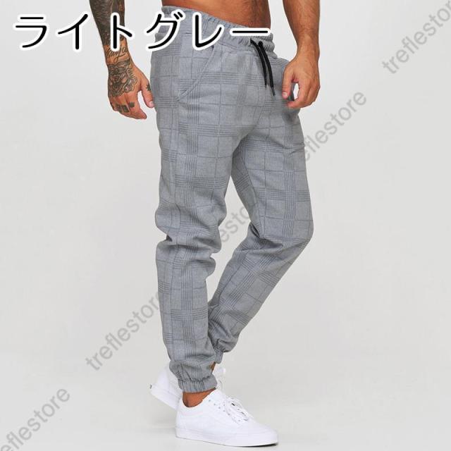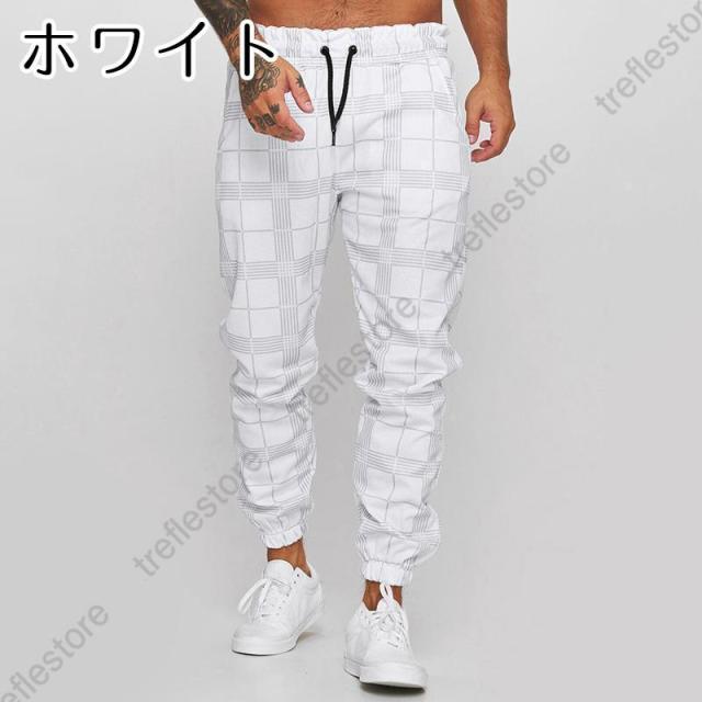 【ポイント5倍!】ジョガーパンツ メンズ アンクル メンズ スウェットパンツ 春夏 クロップド おしゃれ ライン チェック柄 スリム 細身 ラインパンツ ジョガーパンツメンズ