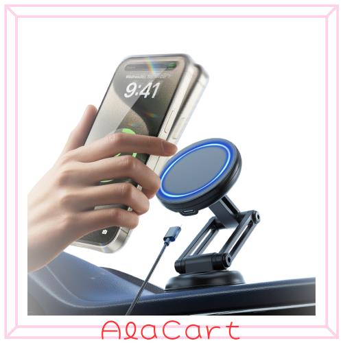 「全方位回転の15W充電式の車載ホルダー」スマホホルダー 車載ホルダー スマホスタンド ワイヤレス車載充電器 最大15w出力 MagSafe対応