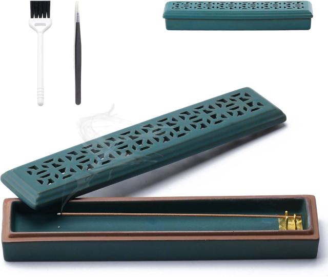 【香炉ボックス】セ ラミック製の香立ては、お香を汚さずにすべてのお香灰をキャッチし、お手入れも簡単です。 香炉には蓋が付いているので、窓や扇風機が開いていても灰が飛ぶことがありません。セ ラミック素材で香炉が燃え尽きることがなく、偶発的な接触によるやけどや線香の消火を防ぎます。