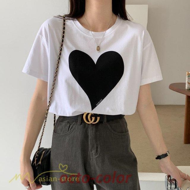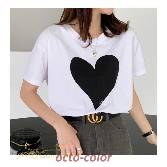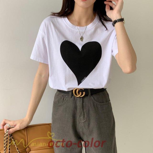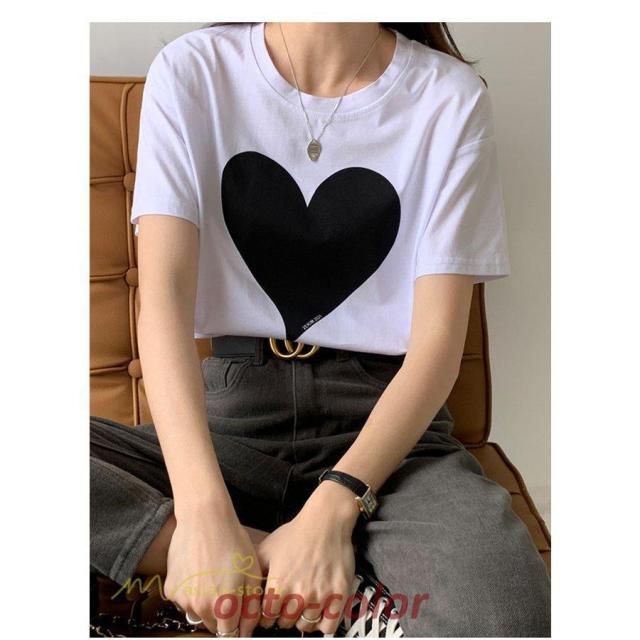 カットソー 着痩せ レディース 着回し 韓国風 日常感 ハート カジュアル tシャツ Tシャツ お出かけ 細身 トップス 可愛い ワイドTシャツ 夏 シンプル