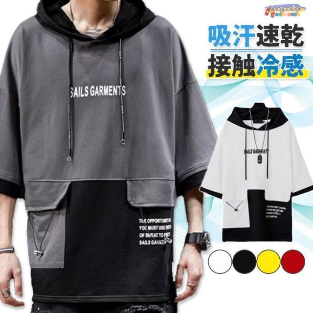 パーカー メンズ 半袖 五分袖 接触冷 トップス Tシャツ カットソー 通販 A01 A02 A03 A04 A05 M L XL 2XL 3XL