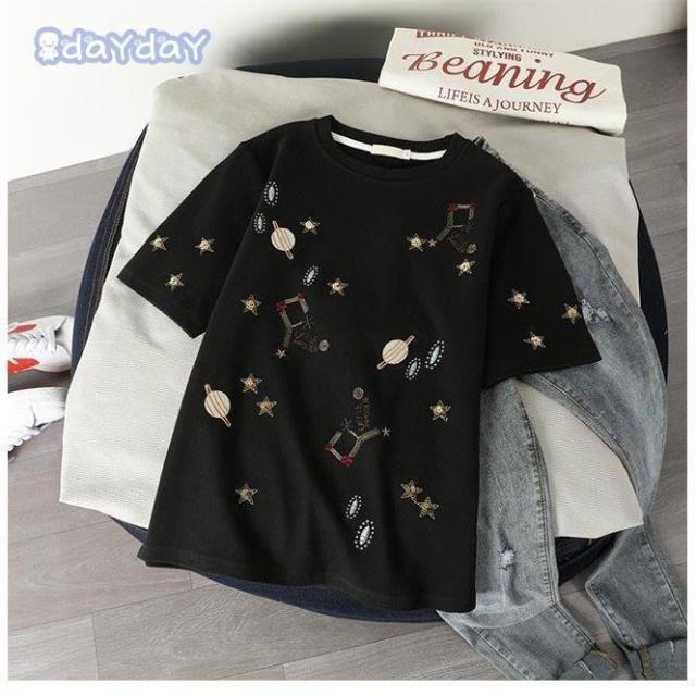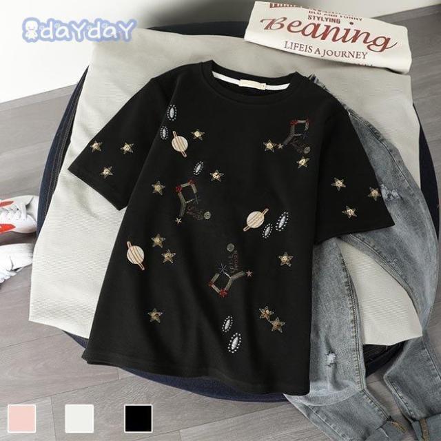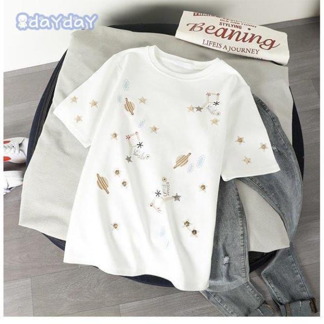 Tシャツ 夏 レディース 半袖Tシャツ 星柄 夏Tシャツ カットソー ゆったり クルーネック コットン Tシャツ 白 可愛い サマーTシャツ お洒落