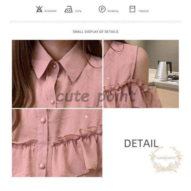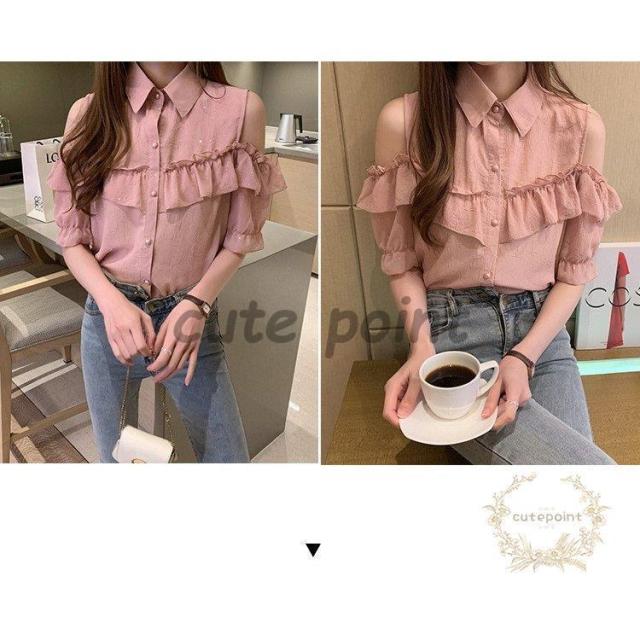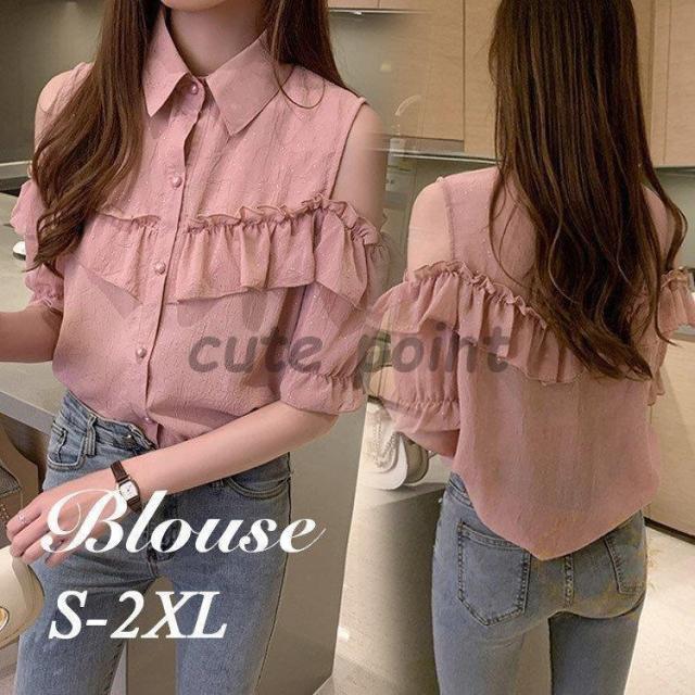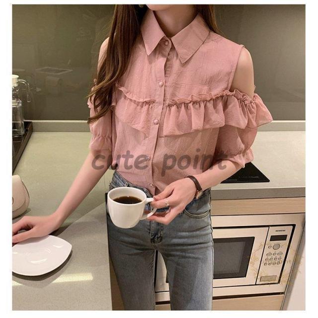 ブラウス レディース きれいめ 40代 春 夏 オシャレ シフォン 半袖シャツ トップス 韓国風 肩出し 大きいサイズ 大人 上品 カジュアル 30代50代 シャツ