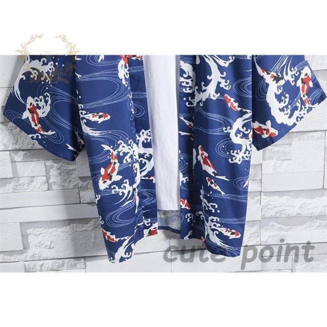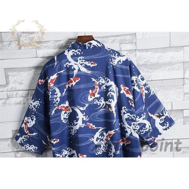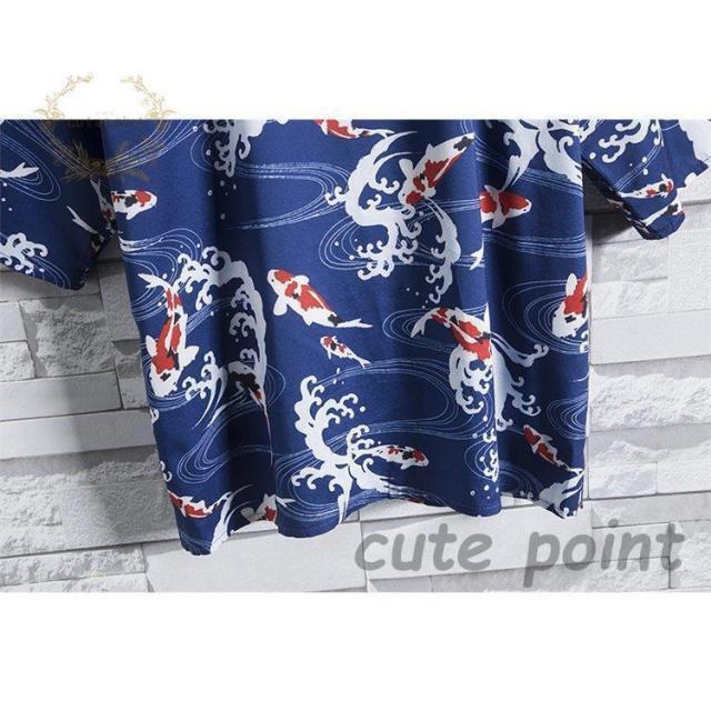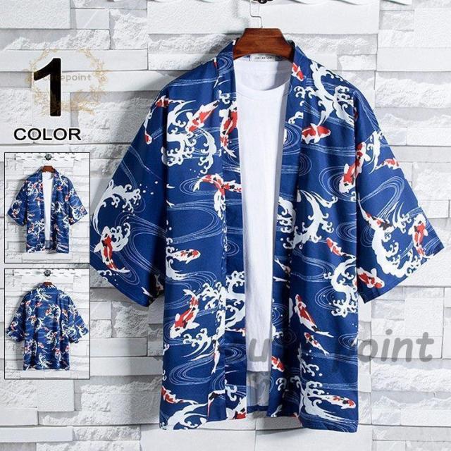 甚平 男性用 メンズ じんべい 夏服 着物 和服 浴衣 花火大会 お祭り 魚柄 ルームウェア 部屋着 羽織