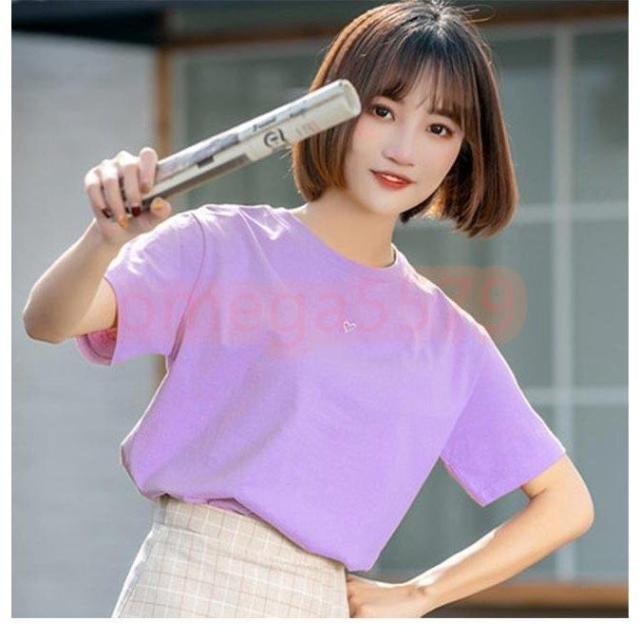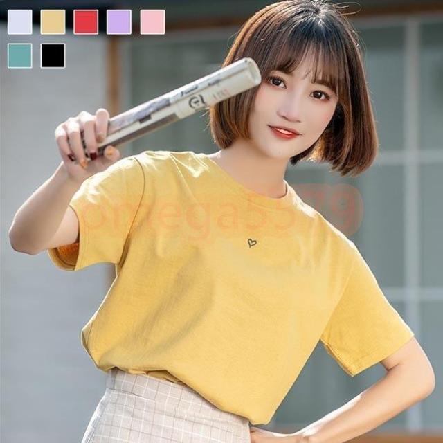 Tシャツ レディース 夏 半袖Tシャツ レディースファッション 通販 イエロー ホワイト ブラック レッド パープル ピンク グリーン S M L XL