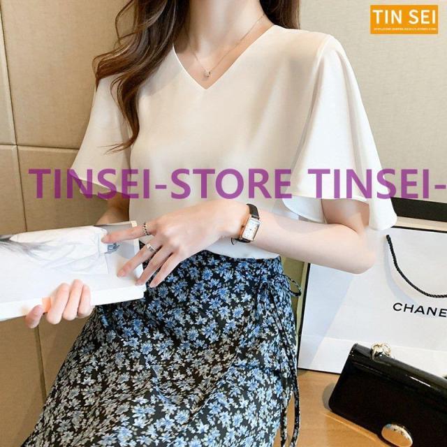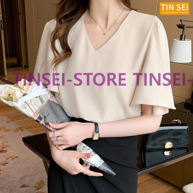 ブラウス レディース きれいめ 40代 春夏 上品 シャツ vネックトップス 五分袖 ゆったり オシャレ 大人 Tシャツ30代 50代 韓国風