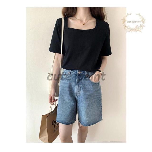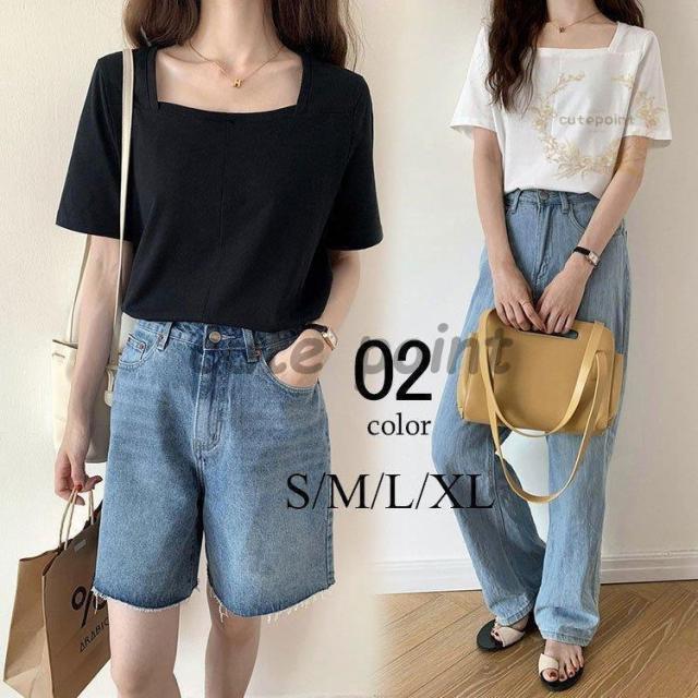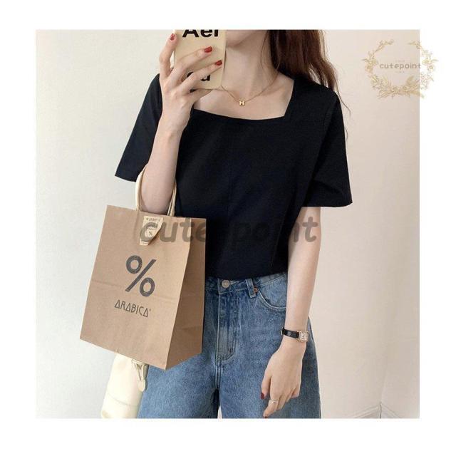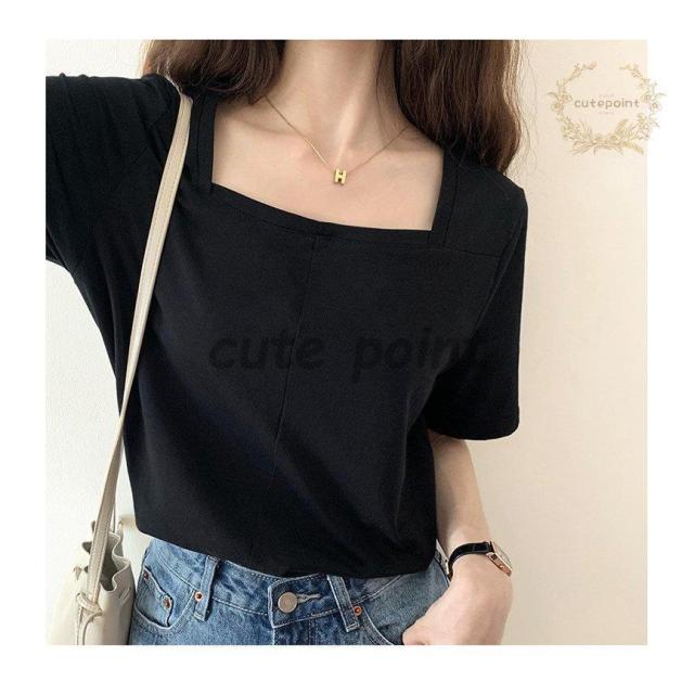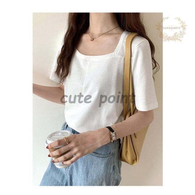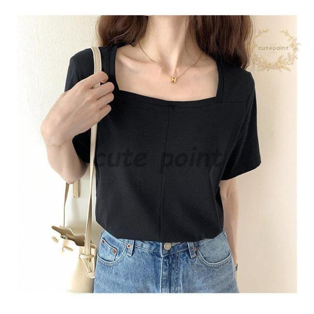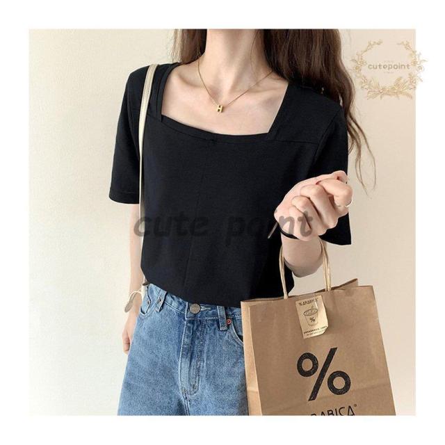 Tシャツ レディース トップス 40代 半袖 綿 スクエアネック 春夏 カットソー 新作 大きいサイズ シンプル UVカット 韓国風 30代 おしゃれ かわいい 20代