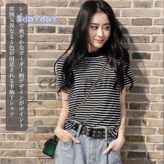 Tシャツ ボーダー柄 レディース 半袖 トップス Tシャツ カットソー 人気 1 2 3 4 5 M L XL