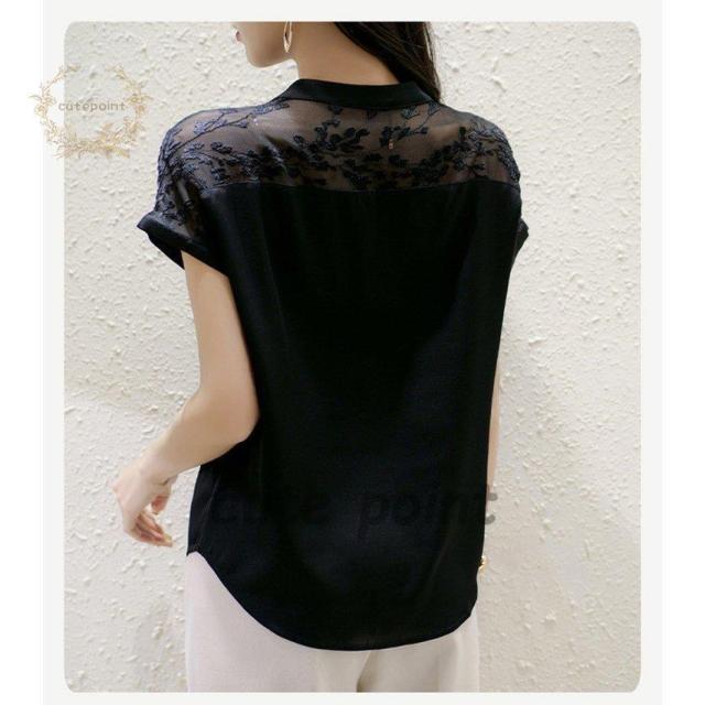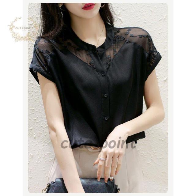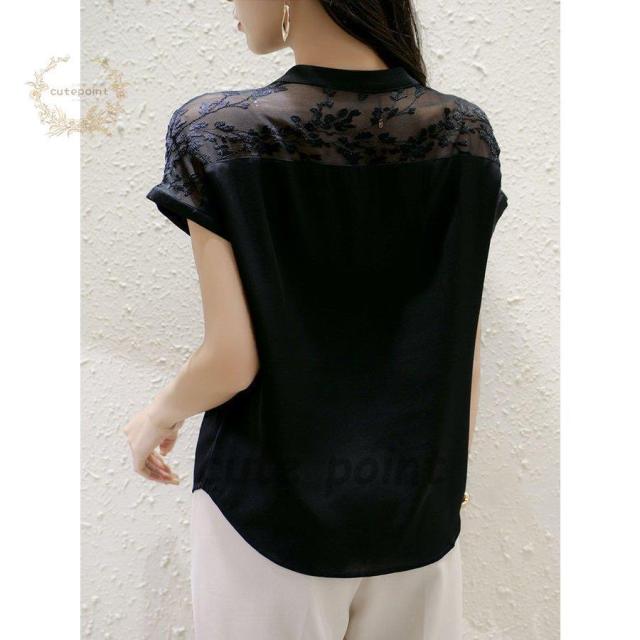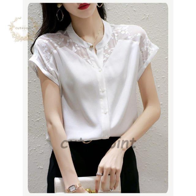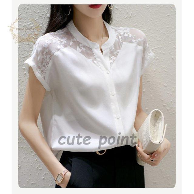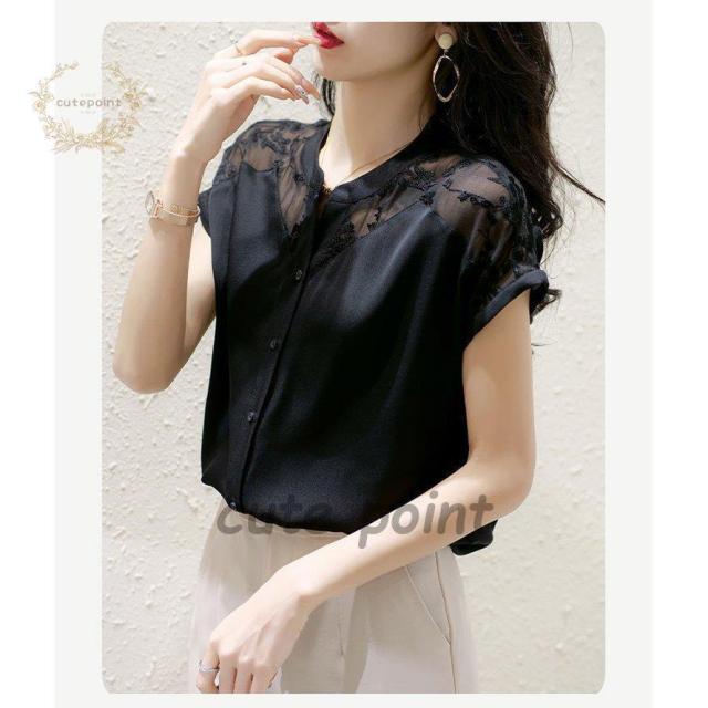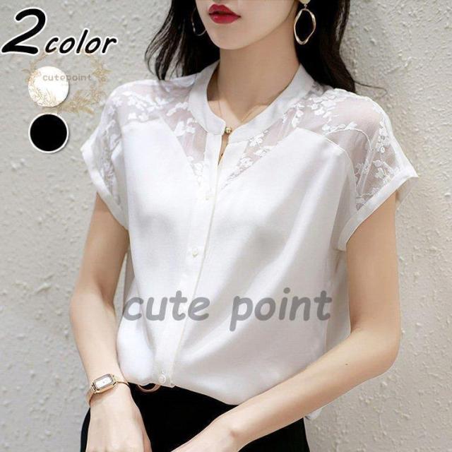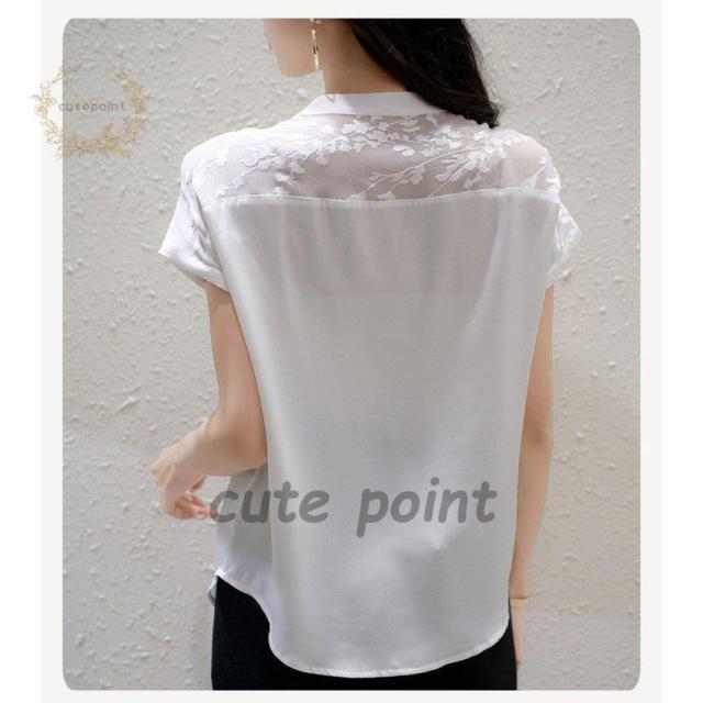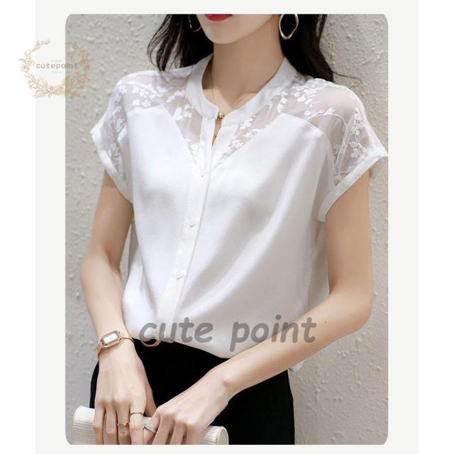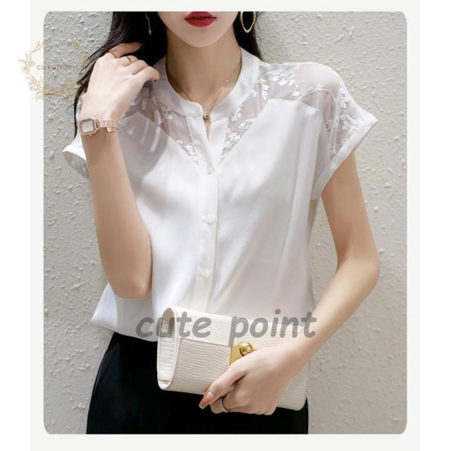 連携キーワード:ブラウス レディース 40代 春夏新作 オシャレブラウス 白シフォンシャツ 半袖トップス レース切り替えブラウス 大人 ゆったり シャツ 30代 50代