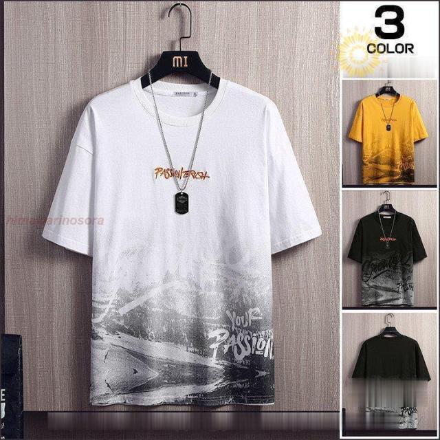 Tシャツ メンズ おしゃれ カットソー トップス Tシャツ カットソー 通販 黒 白 イエロー M L XL 2XL 3XL