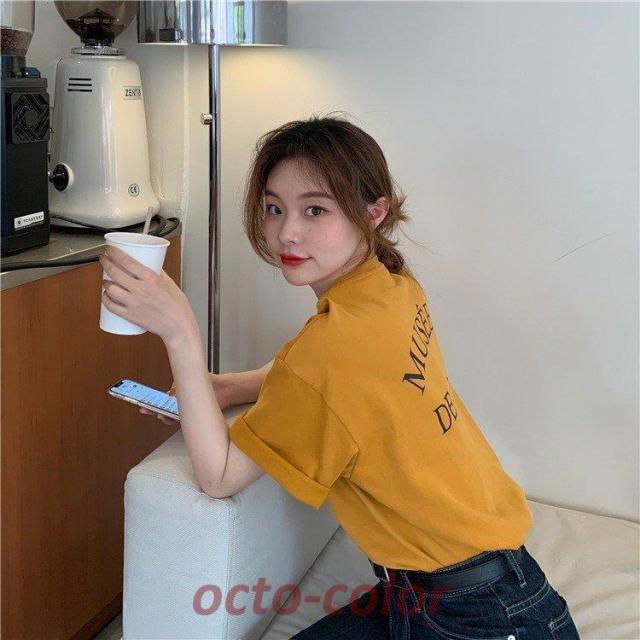 tシャツ レディース 夏 半袖 韓国 レディースファッション 特集 M L XL XXL ホワイト グレー イエロー