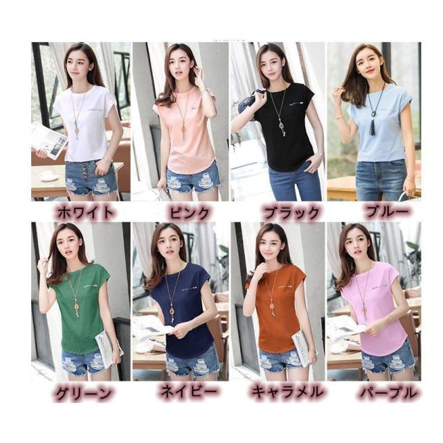 Tシャツ フレンチスリーブ レディース トップス Tシャツ カットソー 人気 ホワイト ピンク ブラック ブルー グリーン ネイビー キャラメル パープル S M L XL XXL XXXL