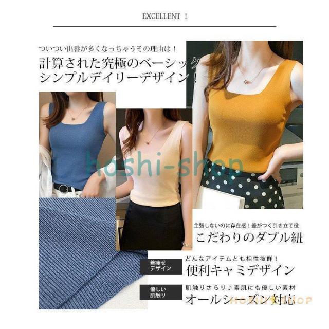 タンクトップ サマーニット トップス ノースリーブ スクエアネック スリム ストレッチ きれいめ レディース インナー 見えてもいい 見せる 重ね着