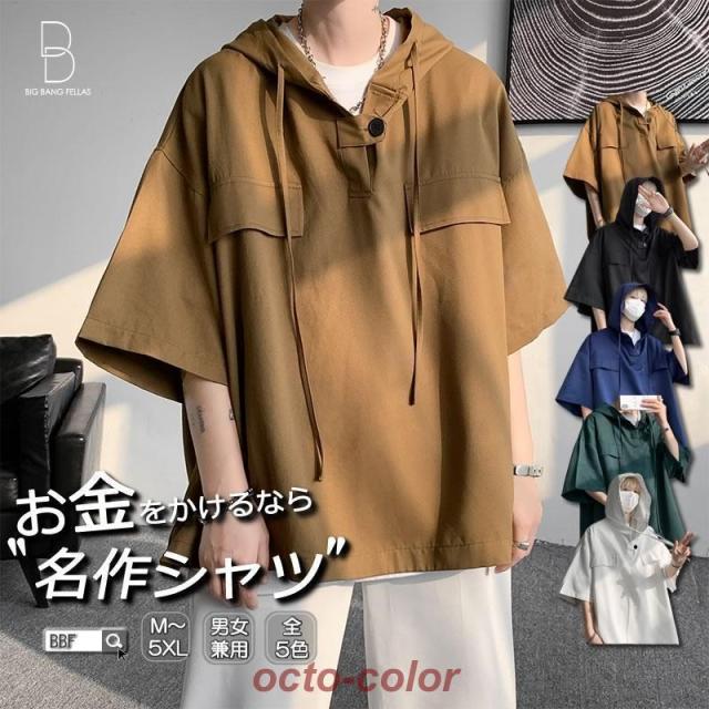 韓国 ファッション 半袖 パーカー 大きいサイズ プルオーバー 被り ハーフスリーブ メンズ ビッグシルエット サマージャケット