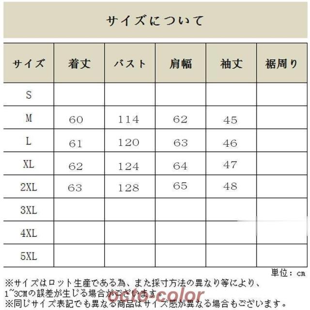 SIZE:M/L/XL/2XL(お詳しくは各図をご参考迄くださいませ。)