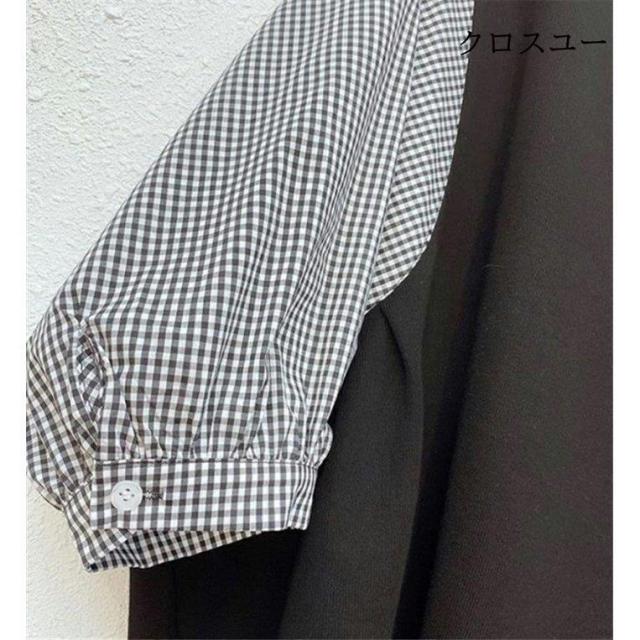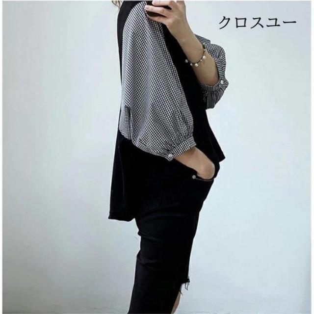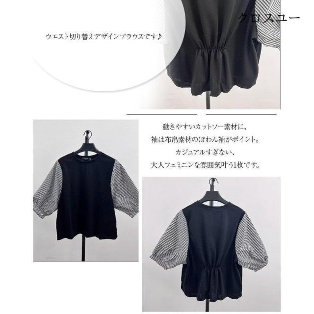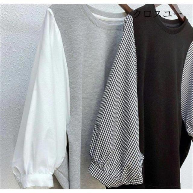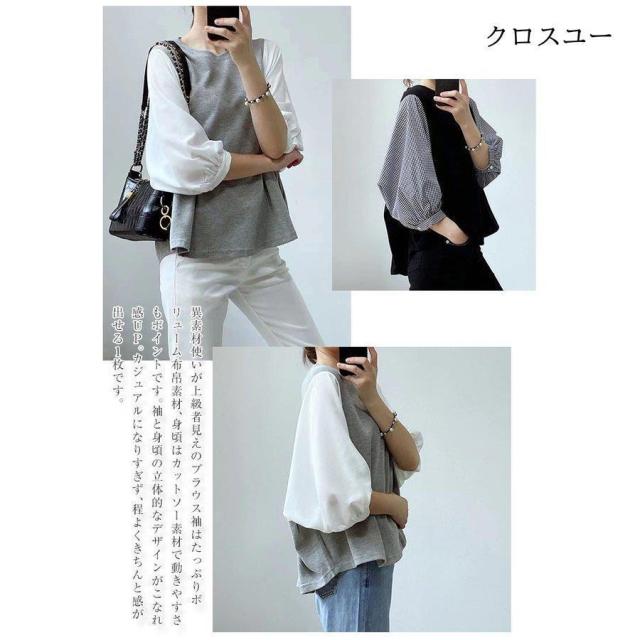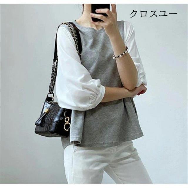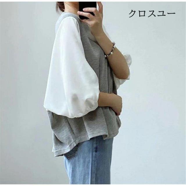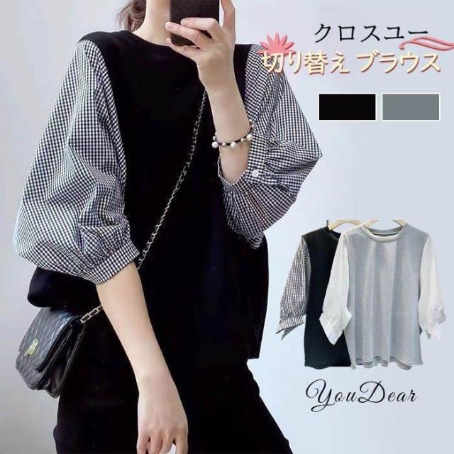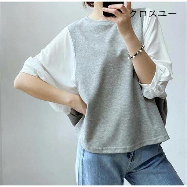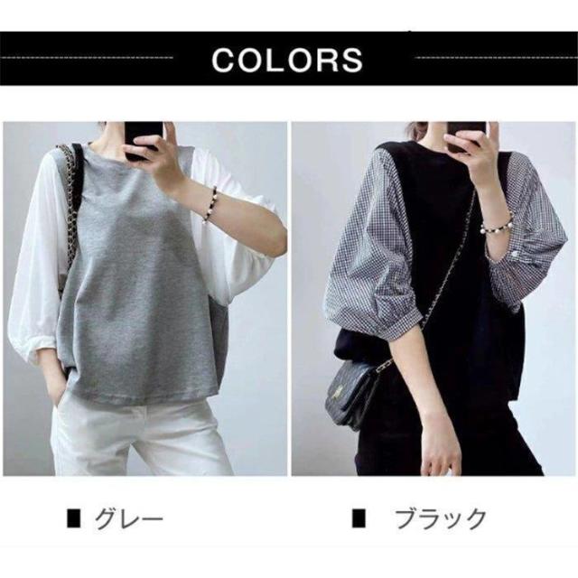 一部 ブラウス 切り替え レイヤード風 トップス Tシャツ カットソー 人気 ブラック グレー M L XL~