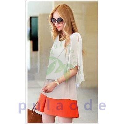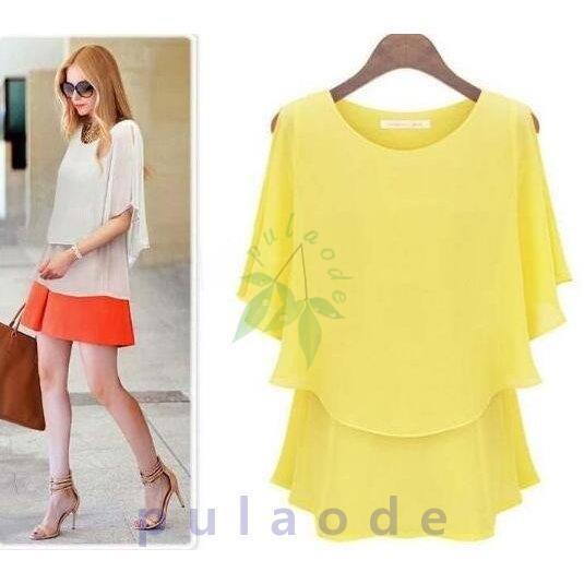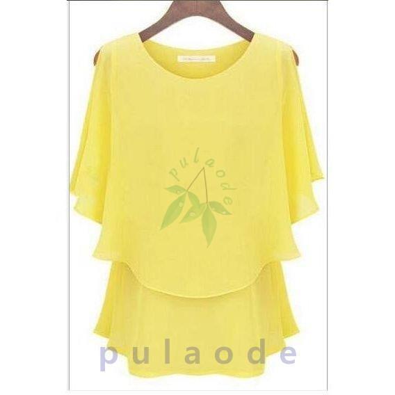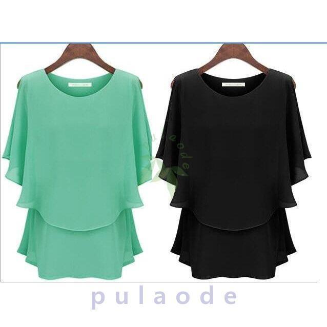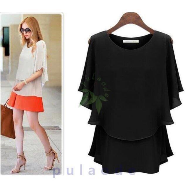 シフォンシャツ Tシャツ レディース大きいサイズ夏新品トップス通勤エレガントtシャツ五分袖シフォン半袖Tシャツ韓国風フリル肩漏れ 丸首