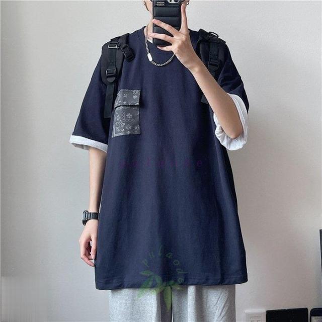 メンズ tシャツ ビッグシルエット 半袖 おしゃれ ビッグtシャツ Tシャツ ロングTシャツ レイヤード風 ゆったり