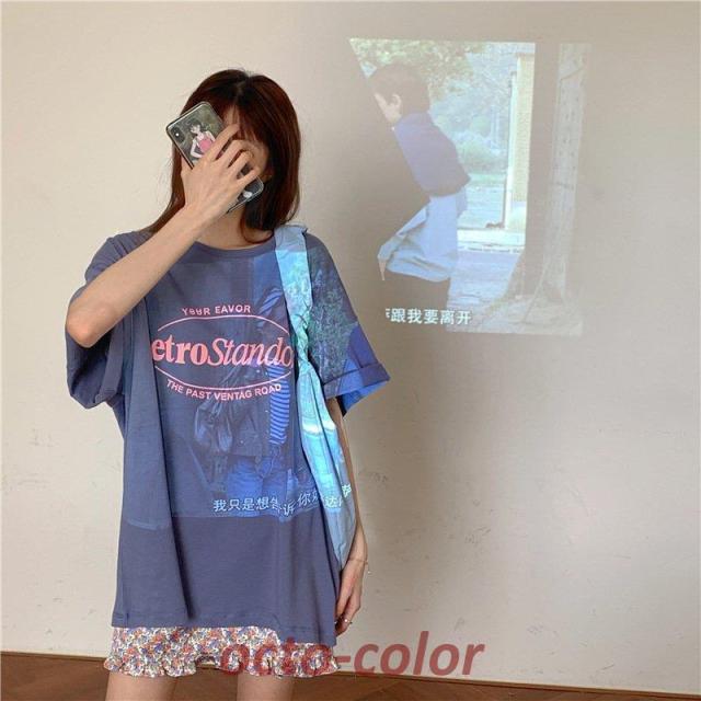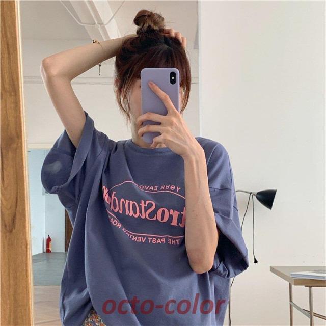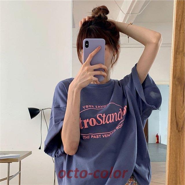 Tシャツ レディース 半袖 夏 韓国フ レディースファッション 通販 パープル ブルー ピンク グレー M L XL 2XL