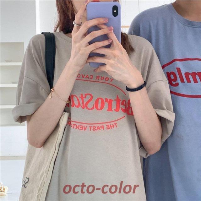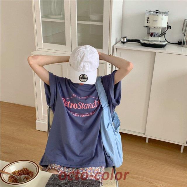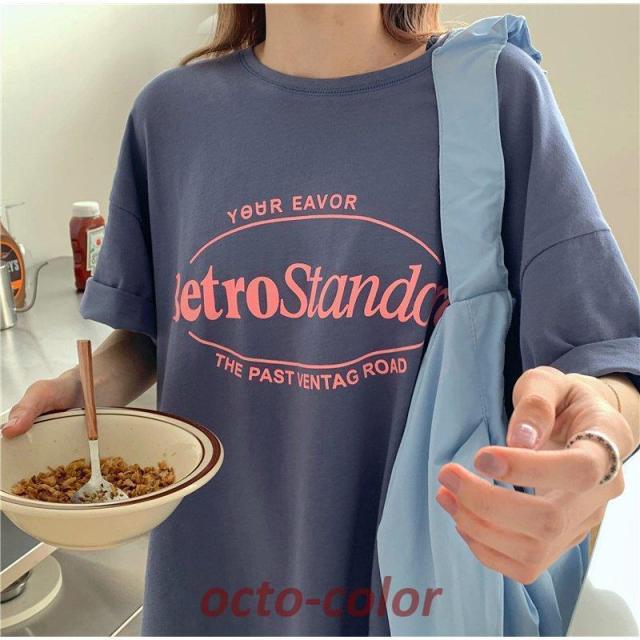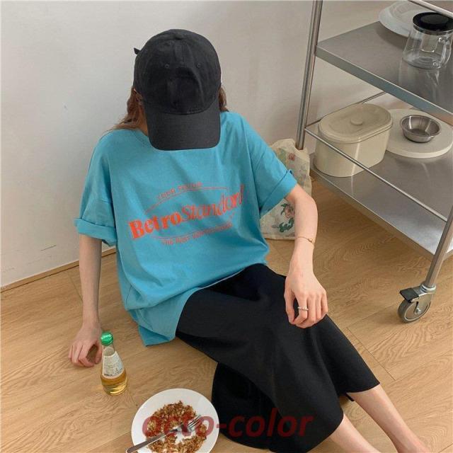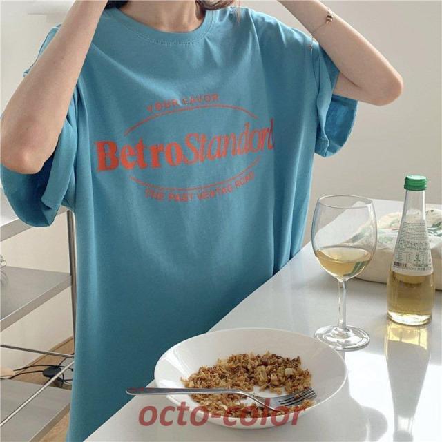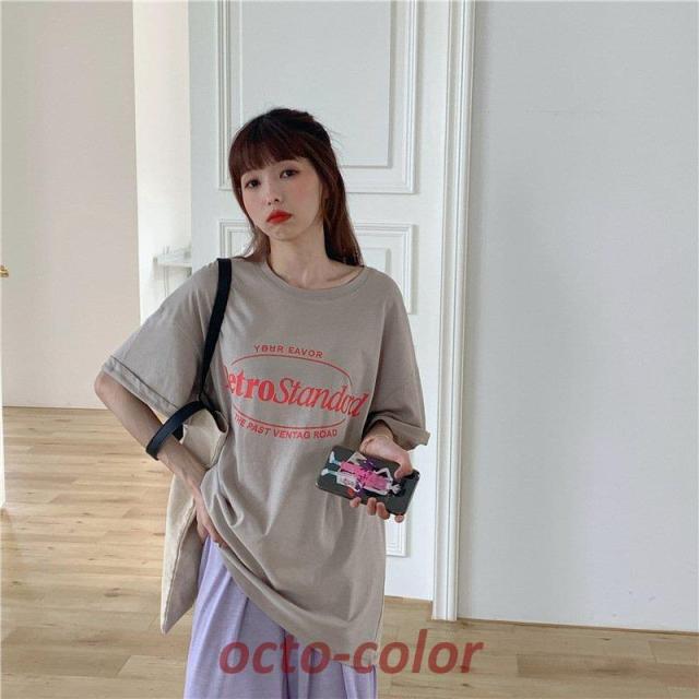 Tシャツ レディース 半袖 夏 韓国ファッション 原宿系 BF風 港風 ファション 着痩せ カジュアル カップル服 体型カバー