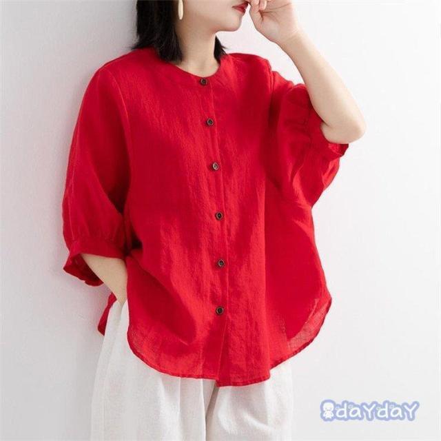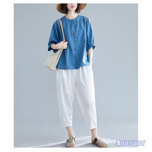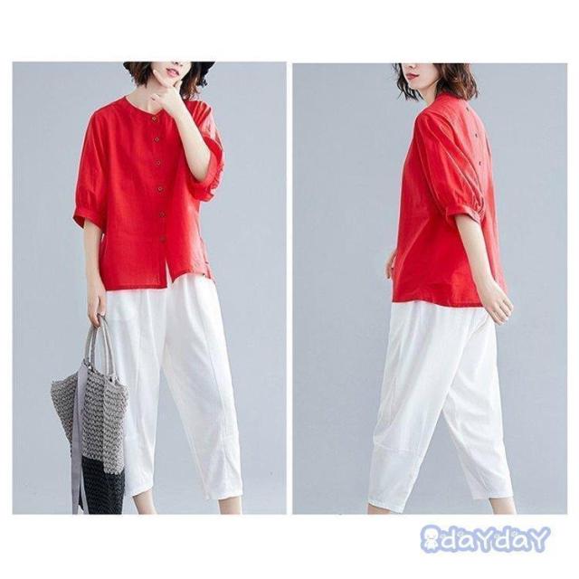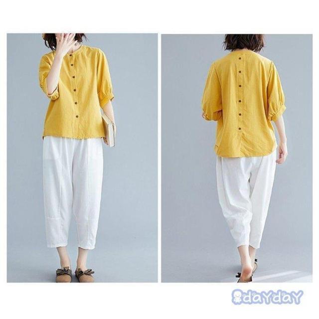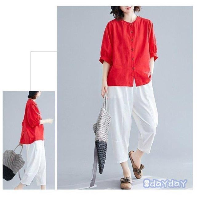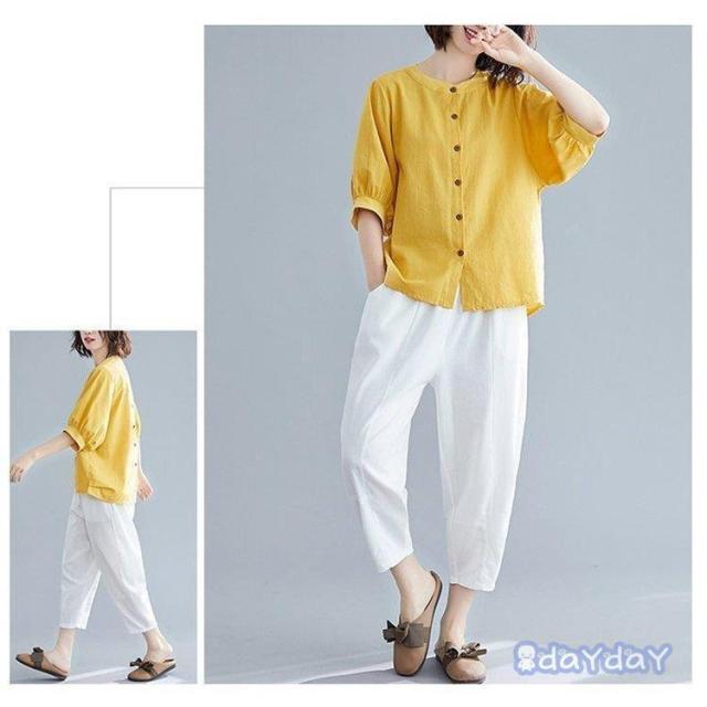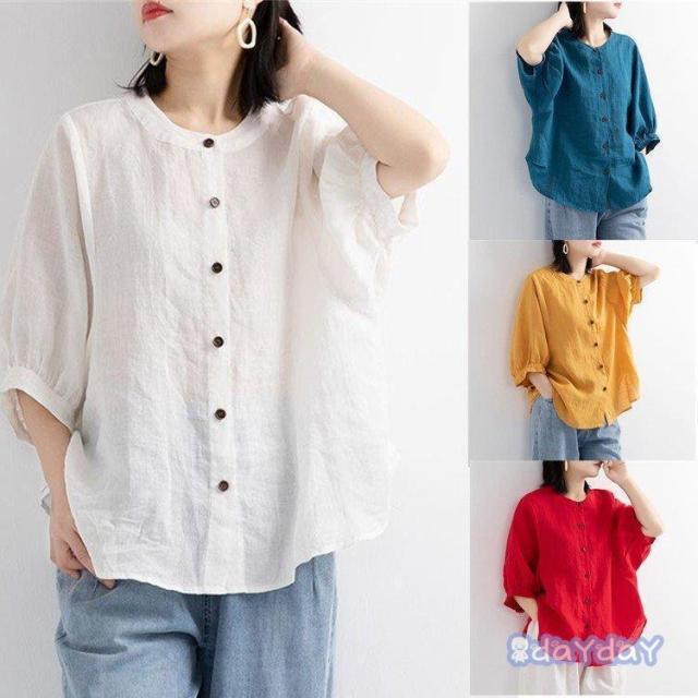 ブラウス Tシャツ レディース 綿麻混 レディースファッション 通販 白 ブルー 赤 黄色 M L XL 2XL