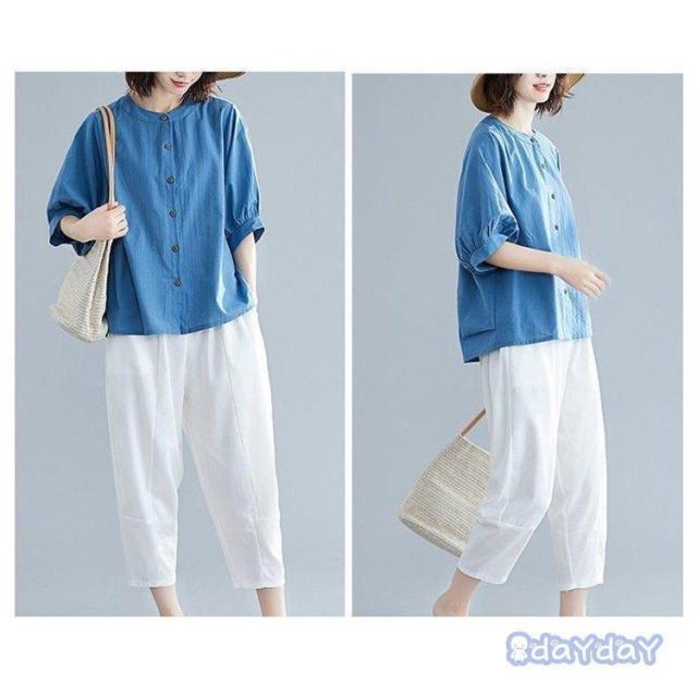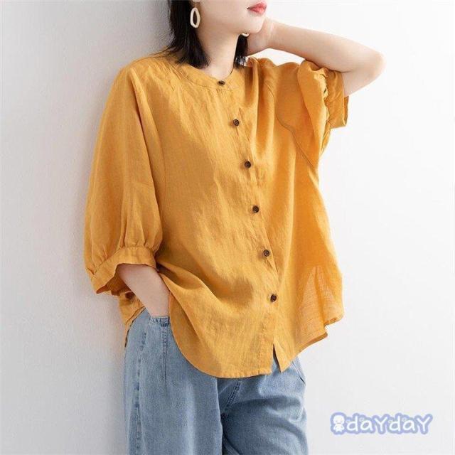 ブラウス Tシャツ レディース 綿麻混風 シャツ プルオーバー トップス tシャツ カットソー コットンリネン おしゃれ 夏 ゆったり 30代 40代 50代 ママコーデ