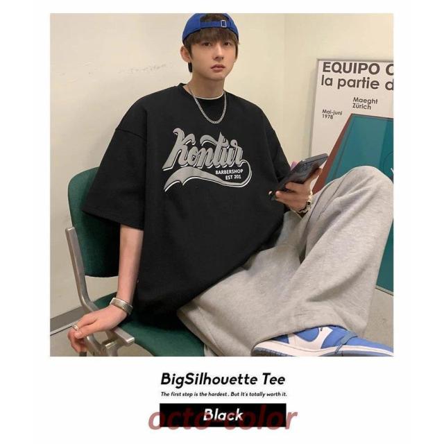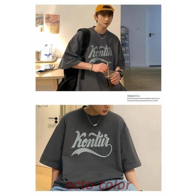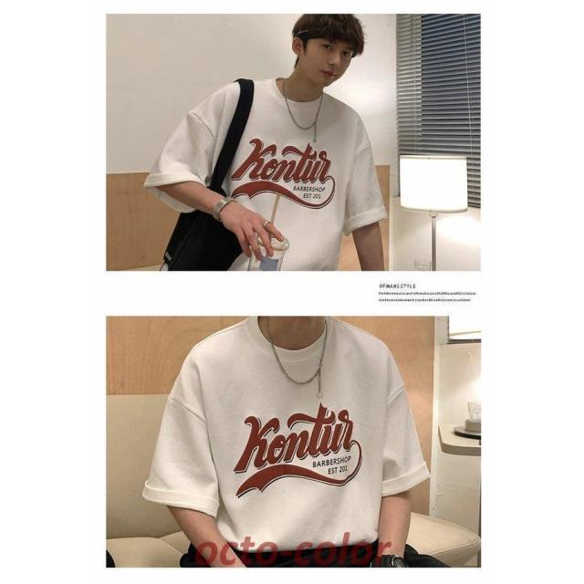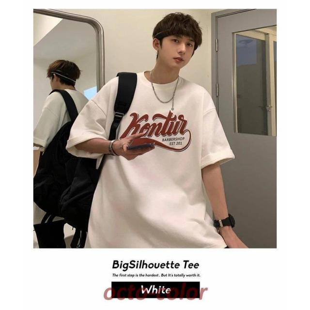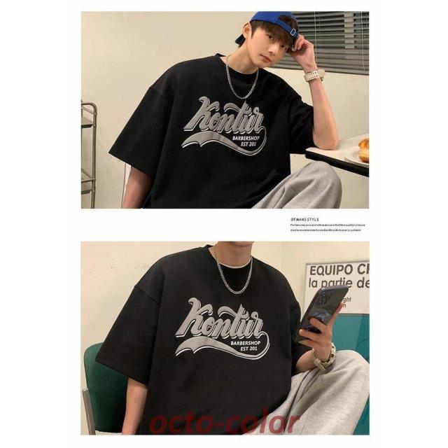 Tシャツ メンズ 半袖 ビッグシルエット オーバーサイズ カレッジ ロゴプリント ゆったり ブランド 韓国ファッション ストリート系 おしゃれ