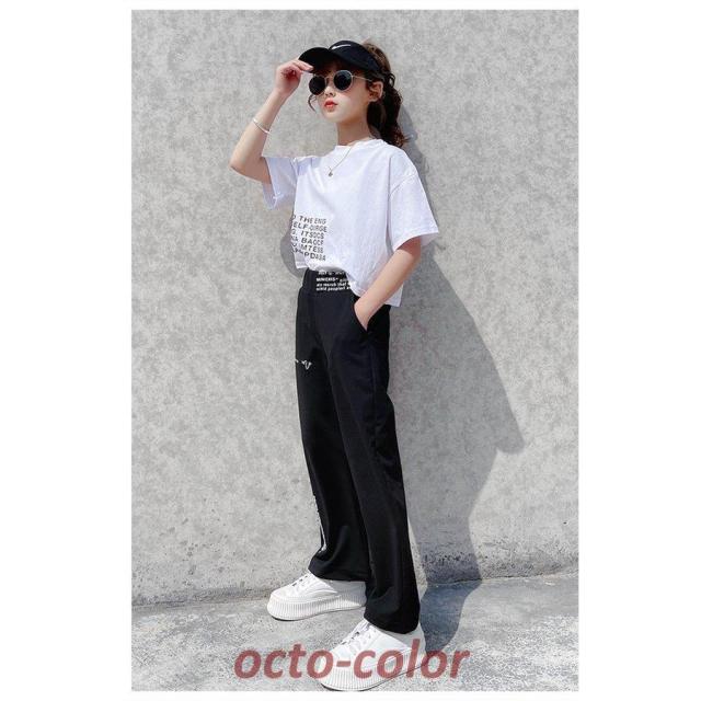 子供服 セットアップ 女の子 半袖 夏 2点セット 子供ジャージ パンツ ヒップホップ 韓国子供服 キッズ 可愛い おしゃれ 小学生 通学着 新品 120 140 150 160 130