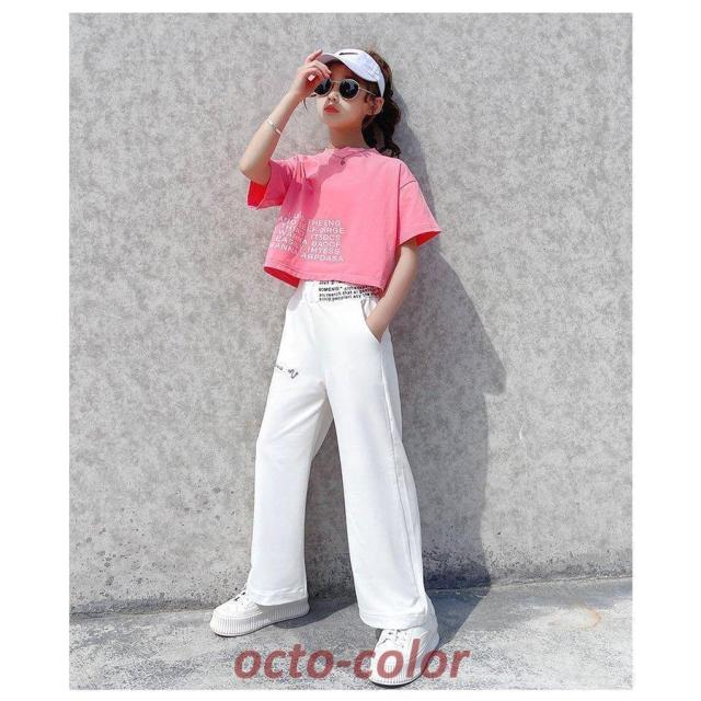 子供服 セットアップ 女の子 半袖 夏 2点セット 子供ジャージ パンツ ヒップホップ 韓国子供服 キッズ 可愛い おしゃれ 小学生 通学着 新品 120 130 140 150