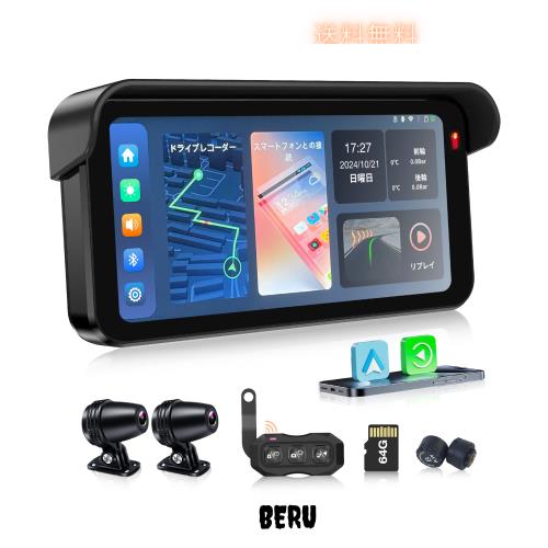 ATOVANKA 6.25 バイク用ドライブレコーダー Carplay、日よけつき、前後カメラ、前後タイヤ空気圧モニター、GPS位置情報システム、1080P+1